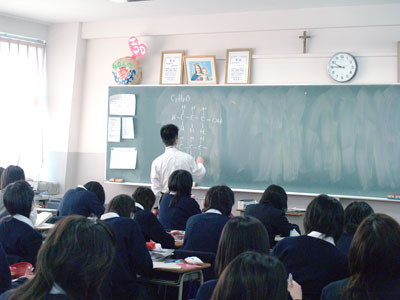 今日は、今年度最後の授業です。今日は高2Dの化学の時間にお邪魔しました。今年度最後の授業なのに、今年度、初めて教室で授業を行うそうです。普段は理科室ですからね。その話を聞いたとたん、私(取材者)の頭の中は、これを記事にしようということでいっぱいでした。