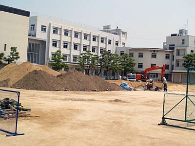 夏休みに入り、夏期講習・クラブ活動と生徒たちも精力的に頑張っています。そんな中、グラウンドは夏休みを利用して改修工事を行っています。始業式には、新たなグラウンドでのスタートです。その間、ソフトボール部や陸上部はグラウンドが使用できないため、別の場所で部活動になります。