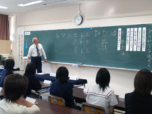 今日は高校体験学習会が午後から行われました。家庭科研究部もティータイム用のクッキーを用意してくれたようです。体験授業は書道です。ひらがな、カタカナともに文字の成り立ちを知ることによって正しい字が書けるようになることを勉強しました。 |