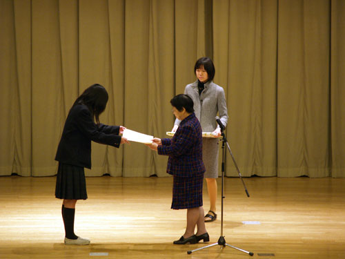 昨日の大塚国際美術館でのシスティナホールコンサートの参加費の一部は四川省の大地震などで就学困難になった人たちのためのチャリティーとして使われます。そこで本日、産経新聞社の方が聖歌隊に表彰状を渡してくださいました。聖歌隊・吹奏楽部はますます活動の幅を広げているようです。