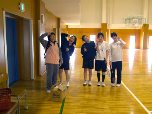 2月21日(土) 会議の日 今日は会議の日で授業はありません。でも午後からクラブ活動があるので、登校している生徒もいます。バドミントン部は午後から体育館を使っての練習。しかもバスケットボール部もバレーボール部も今日は午後からは体育館を使用しないということで、体育館を独占できます。しかし、練習開始時点でいた部員は4名です。素振りなどウォーミングアップをしていましたが、顧問の先生に出席者の報告をすると、先生は愕然としていました。「怒るというよりも、笑っちゃうくらい」の気持ちだったのでしょう。いつもなら練習の様子を撮影するのですが、和気藹々と部員とくつろいでいる姿を撮影することができました。