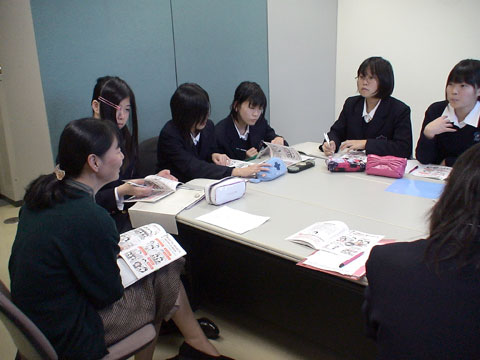 4時間目はちょうどオープンキャンパスの施設見学の時間とかち合います。私(取材者)は1・3限が授業なのでその合間をぬっての取材活動、でも、施設見学がいったいどのあたりを回っているのか全くわかりません。とにかく行動あるのみ、ということで講堂下に向かいました。美術室で生徒たちが真剣に作品を作っていました。紙でかごなどを編んでいるようです。高1は総合学習で京都工芸繊維大学にいった時に、会社の機織の工場も見学しています。まるで編み物をしているように紙を編んでいます。最終的にどんな作品になるのでしょうか。色使いなども個性があふれています。 調理室にともる灯り。家庭科部が活動をしています。そこで私(取材者)、すぐに職員室にカメラを取りに戻りました。調理室には4名の中学生の家庭科部員。今日はグラタンとドリアを作りました。ほとんど平らげてしまった後で、食後の一服といった感じで紅茶を飲んでいる生徒もいます。この空間、時間の流れがゆったりとしています。 バレー部は卒業生が練習に参加していました。卒業生から声をかけられた私(取材者)、いったい誰と思いましたが、すぐに名前を思い出しました。卒業してからもクラブに参加したくなる、城星学園は卒業生の心のふるさとです。 バスケ部の練習試合の情報が耳に入りました。そこで体育館に足を向けましたが、まだ、試合は始まっていません。ウォーミングアップを始めたところです。残念ながら練習試合の風景を撮影することはできませんでした。でも、相手は四天王寺学園、さあ、勝利したのは城星学園か、それとも四天王寺学園か? |