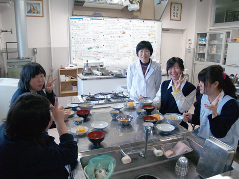 高1の美術の時間では、CDケースのジャケットを作成しているようです。美術室では作品の製作に余念がなく、また購買部にはCDケースを買いに来ている生徒がいました。授業で必要なものなので、まだ購入していない生徒は至急購入しましょう。Now on sale 中2の調理実習ではハンバーグを作っていました。なかなか上手に出来上がったようで、素敵な女性に成長してくれそうです。お弁当のおかずにハンバーグ、デザートにはマーブルケーキです。担任の先生と生徒たちと一緒に食べていました。中学校は担任の先生が昼食時に教室で生徒と一緒に過ごします。でも、みんなで同じものを食べるって宿泊行事以外めったにないことなので、家族的な雰囲気を味わうことができるいい機会だったかもしれません。 |