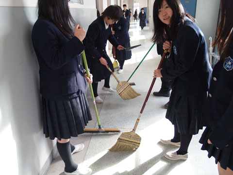 今日の昼休み、小聖堂で「祈りの集い」が行われました。 今日のお話は、朝礼や音楽の時間に歌うことがある『いつも喜んでいなさい』という歌をふまえての話でした。参加した生徒も中1が中心でしたが、今日の話はわかりやすかったと思います。以下は聖書にあたる所です。 『いつも喜んでいなさい。絶えず祈りなさい。どんなことにも感謝しなさい。これこそ、キリスト・イエスにおいて、神があなたに望んでおられることです。“霊”の火を消してはいけません。預言を軽んじてはいけません。 (パウロのテサロニケの信徒への手紙 T 5・16〜20) 2月3日は節分です。終礼時、高校1年生では豆まきが行われました。鬼のお面をかぶった先生に豆の集中砲火があびせられます。「悪い子はいねえか」と叫ぶ鬼。あれ、何か行事が変わっていませんか?まあ、そんなことは置いておいて、先生も生徒も豆まきの短い時間を楽しみました。その後はもちろんお掃除です。ほうきとモップで廊下や床をきれいに掃除しました。 |