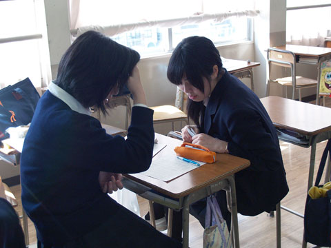 放課後の調理室、小学校の先生がホットケーキを焼いていました。あさって、調理実習があるようです。焼きあがったホットケーキを試食しているのは中学3年生。おいしそうにホットケーキをほおばっていました。 放課後の理科室、理科の先生が一人で実験の準備をしていました。明日の授業で実験をするのでしょうか。英検の対策が放課後のとある場所で行なわれていました。さすがに教室の中に入るわけにはいかなかったので、教室の外から撮影しました。ガラスに映った外の風景のため生徒の姿はかなり分りにくいのが、少々残念ですが。 英検の対策が放課後のとある場所で行なわれていました。さすがに教室の中に入るわけにはいかなかったので、教室の外から撮影しました。ガラスに映った外の風景のため生徒の姿はかなり分りにくいのが、少々残念ですが。 |