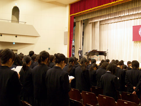学年主任の先生が入学者の名前を読み上げます。自分の名前を読み上げられた生徒、ならびに保護者の方はこの日を待ちわびていたことでしょう。学校長式辞、祝辞、歓迎の言葉の後、中1・高1の代表の生徒が「新入生誓いの言葉」を述べました。決意を新たにし、新しい学園生活を過ごそうという思いがひしひしと伝わってきました。入学式が終わったあとは正門マリア像前で記念撮影、その後教室で担任の先生からいろいろな話がありました。 さあ、今日から6学年すべてそろった学園生活が再び始まります。今年生徒たちはどのようなドラマをくり広げてくれるのでしょうか。 |