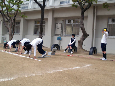 放課後、グランドではいろいろな種目の練習が行われていました。リレーの練習をしているクラスもありました。バトンの受け渡しをいかにスムーズにするかが勝敗に関わってきますからね。F1レースではピットでのタイヤ交換をいかに速やかに行うかというのと同じことですね。バトンの受け渡し、感覚をしっかりと身につけてほしいと思います。「習うより慣れろ」です。 |