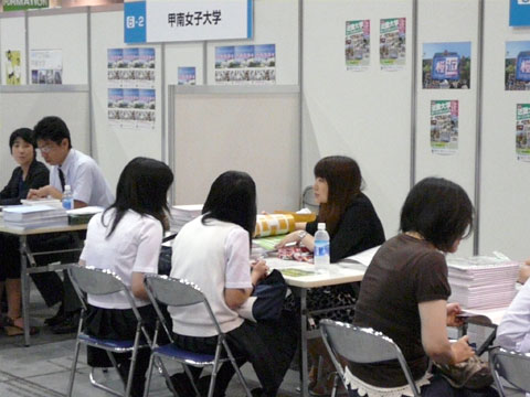 参加した生徒は、自分の希望がかなったブースで実際に大学の先生の講義を聴い たり、自分の志望校となる学校の説明ブースで話しをきいたりと進路決定の参考 にしていました。 |