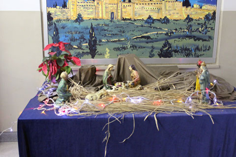 この時期、昇降口に馬小屋が設置されているのは城星学園の生徒なら誰しも知っていることです。今年はクリスマスツリーだけではなく、馬小屋にも電飾がほどこされました。電飾を鮮やかに撮影するためにマニュアルモードで撮影しました。久しぶりですね、しぼりやシャッタースピードを自分で設定して撮影するのは。ふだんはオートで撮影していますからね。