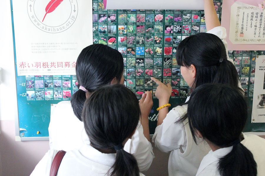 中学校舎2階の階段の掲示板には誕生花のカレンダーが掲示されています。このカレンダー、4年以上は掲示され続けています。中学2年生が自分の誕生花だけでなく、友達の誕生花も探して、花言葉を確認して楽しんでいます。