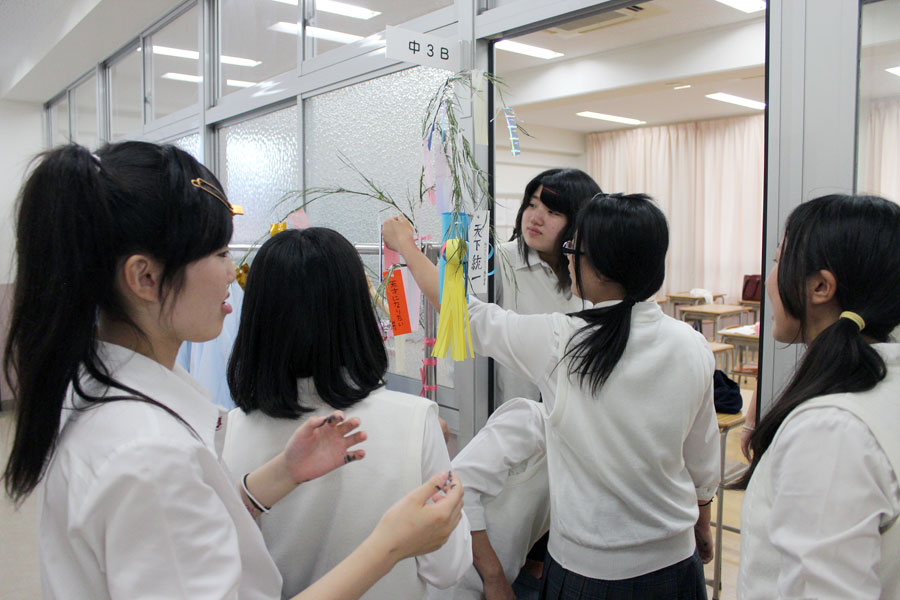 6時間目のLHRの時間、中学校では七夕祭が行われました。生徒たちは短冊に願いを書いて笹に結び付けています。本当の七夕は7月7日ですが、その日はすでに期末考査期間中ですからね。さあ、生徒たちが書いた願いは叶うのでしょうか。