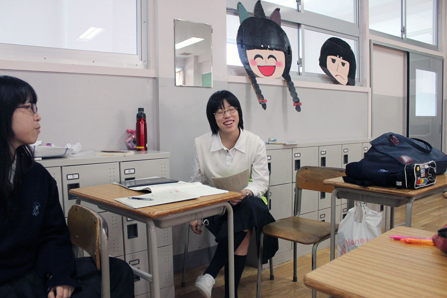 ドイツからの留学生が職員室にあいさつに来ました。今日で城星学園に登校するのが最後だそうです。高2Cの友達はオーストラリア語学研修に行っていて、最後に会うことができません。終業式の日にお別れは済ませていると思うのですが、少し寂しいですね。最後にバレー部の友達と一緒に写真を撮りました。彼女の記念となれば嬉しいです。来週の今頃はドイツで私たちと同じ空を見ていますね。 |
