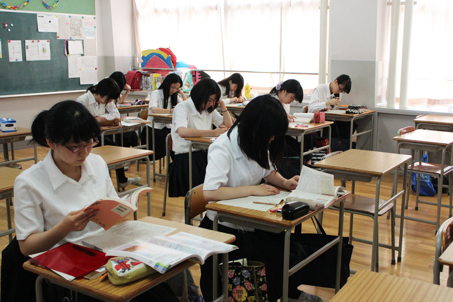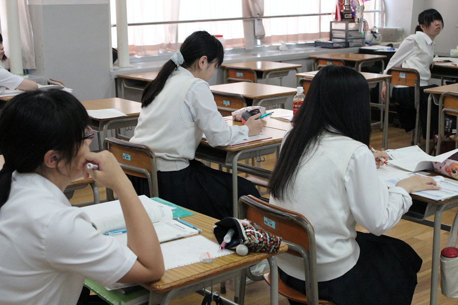 さて、定期考査の名物でもある放課後の教室での勉強ですが、今日は高校3年生の教室を取材しました。取材した時間が12時半頃だったので、お昼ご飯を食べて休憩中という生徒もいました。さあ、明日のテストはどうなるのでしょうか。明日からは中学1年生も期末考査が始まります。6学年そろって、頑張ってテストを受けてほしいと思います。 |