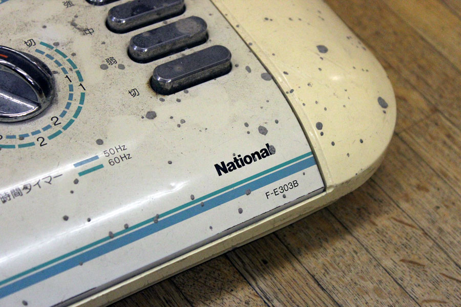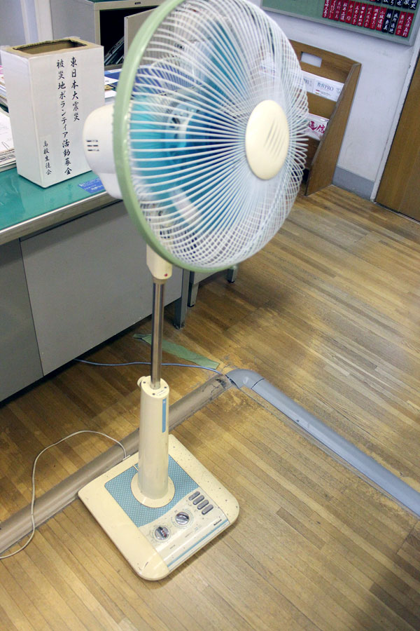 職員室前に扇風機が登場しました。なぜ、職員室に急遽扇風機が登場したのか、それは読者の皆さんの想像におまかせします。この扇風機、メーカーのところをアップすると「National」と書かれています。そして、タイマーには「60Hz」と「50Hz」の区別が、さに首は上下にしか動かないという、最近はお目にかかれないものです。