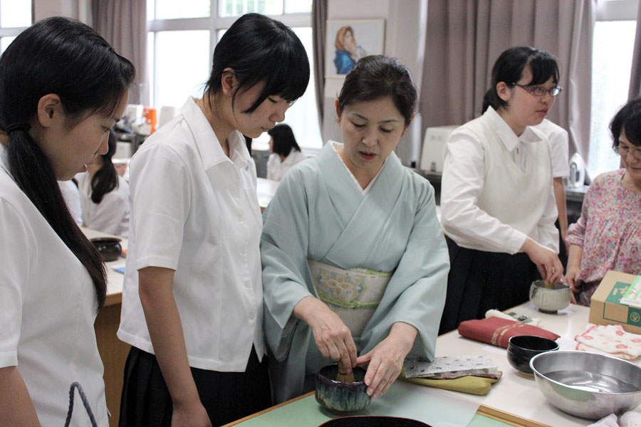 放課後の被服室、茶道のオリエンテーションが行われました。先日、学校からプリントが配布されましたが、希望者を対象に茶道が行なわれます。本日はそのオリエンテーションが行われたので、作法などもきちんとできていません。きちんと茶道を勉強するのはこれからのことになるようです。でもオリエンテーションに参加した生徒たちはとても楽しそうでした。