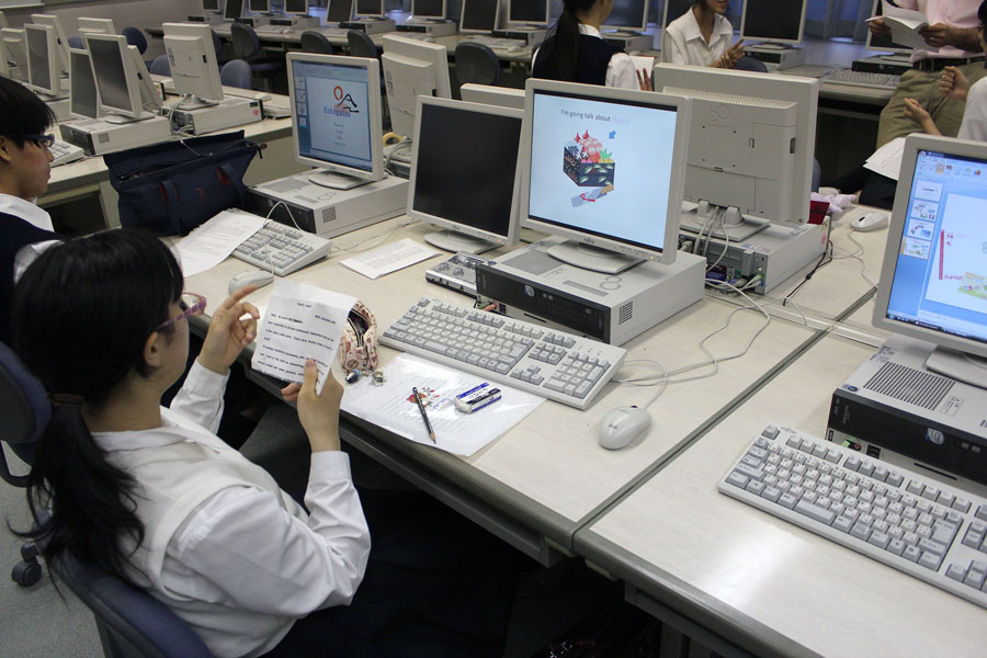 コンピュータ室で高2Cのイングリッシュデーが行われていました。オーストラリア語学研修まであと1週間です。ネイティブの先生ともいろいろと打ち合わせをしているようです。3週間の語学研修、しっかり勉強してきてほしいと思います。