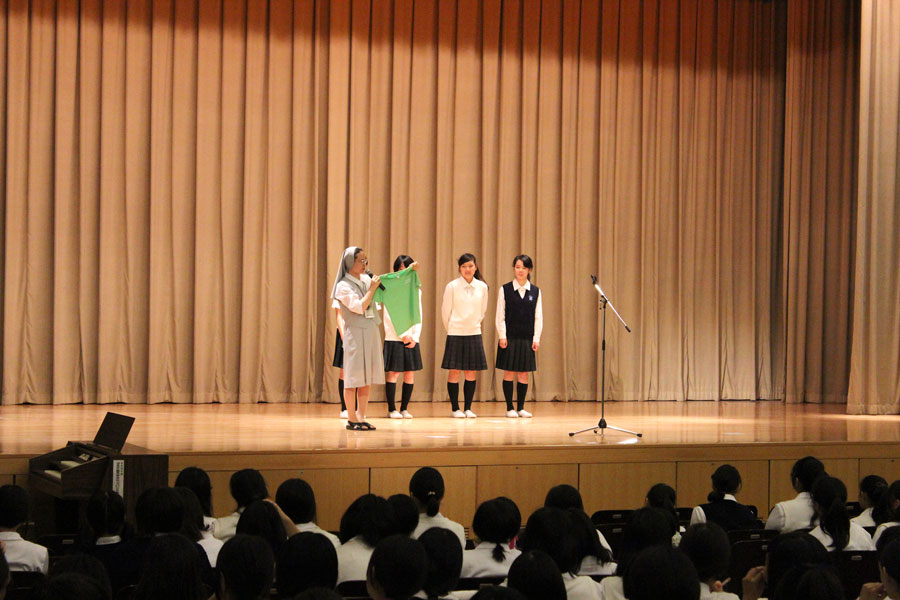 生徒会のメンバー4人が東日本大震災のボランティアに参加します。ドン・ボスコの学校であることがわかるように、背中にはドン・ボスコの顔もプリントされています。城星学園の代表として、東北の地で活躍してくれることでしょう。