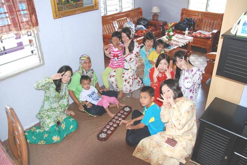 民族衣装をお借りしたり、遊びを教えていただきました。昨日より、ラマダン(断食月)に入り家族の方と一緒に食事はできませんでしたが、カレーの作り方を教えていただきおいしい食事をご馳走になりました。満足そうな表情でした。