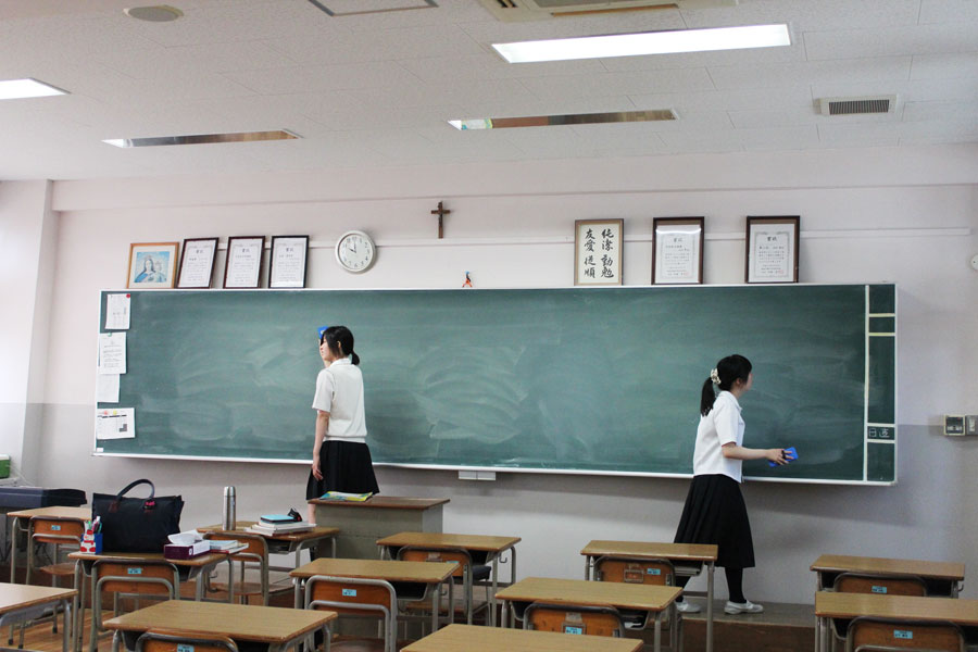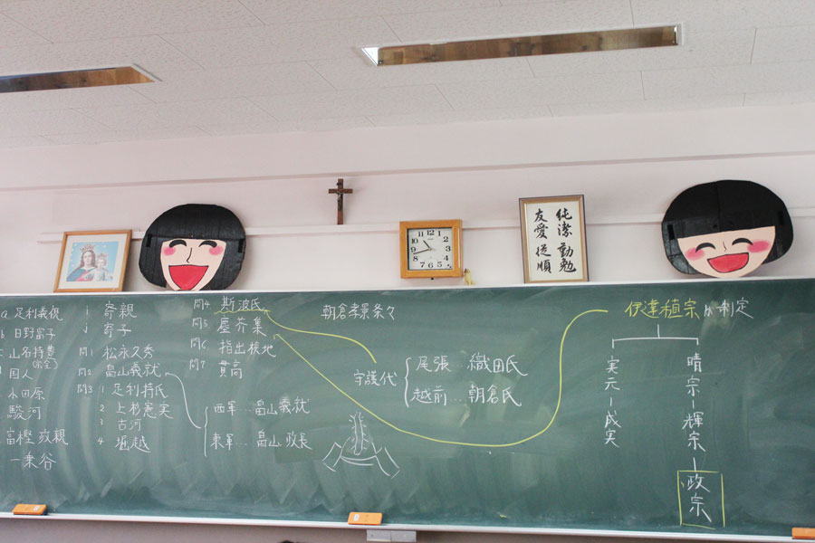 本校の卒業生で宝塚歌劇団月組男役トップの龍真咲さんから色紙をいただきました。先日は希望者が宝塚歌劇の鑑賞に行ったようです。本校には社会で活躍する先輩がたくさんいます。生徒一人ひとりが自分の夢を持ち、それぞれの進路を開拓しているのも、城星学園が少人数制の学校だからできる技なのでしょう。自分の夢をかなえたいそこの君、城星学園で素敵な先輩たちと学園生活を楽しんでみませんか。 夏期講習が行われています。教室は講習以外原則として使用禁止です。自習室は図書室です。でも、図書室は飲食禁止です。そこで被服室が食堂に早代わりです。生徒たちは被服室で昼食を食べた後、補講をしてもらったり自習をしたりするのでしょう。 |