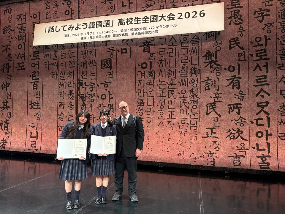 2026年3月7日,東京の韓国大使館にて「話してみよう韓国語 高校生全国大会2026」が開催され,本校から2名の生徒がスキット部門に出場しました。