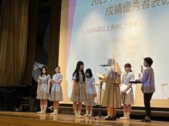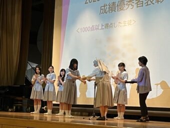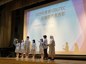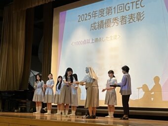 水泳部の表彰に続き、GTEC4技能1000点以上の人の表彰です。素晴らしい成績です。高校3年生は、毎日の朝学でリスニングやリーディング、スピーキングをしてきました。授業でライティングも行っています。該当者の多さは、その賜物ですね。ここからの受験にも大いに役立ててください。