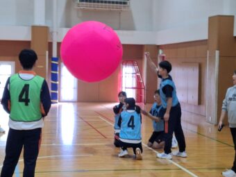 「ニュースポーツ」は、「いつでも どこでも だれでも 気軽に楽しめる」ということをキーワードに講座を行っています。本日よりKIN-BALLという新たな競技に挑戦しており、みんな楽しそうに体を動かしていました。