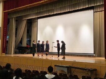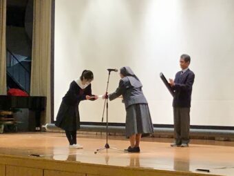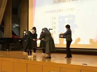 また、先日開催された英語暗唱・弁論大会の表彰や、剣道部・水泳部の活躍の表彰もありました。