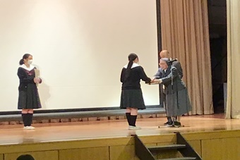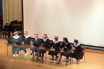 生徒会による寸劇のあと、クリスマス会を行いました。