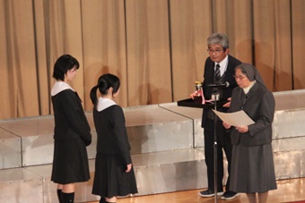今年の聖歌の課題曲は「母の心」。各クラス、これまで練習を重ねてきた成果を聖歌・選択自由曲ともに美しい歌声で披露してくれました。クラス一丸となったこの経験をこれからの学校生活でいかしてください。