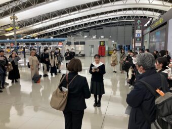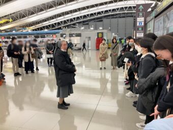 添乗員さんへの挨拶、添乗員さんからの注意事項を聴いて、出国ゲートで手を振りました。