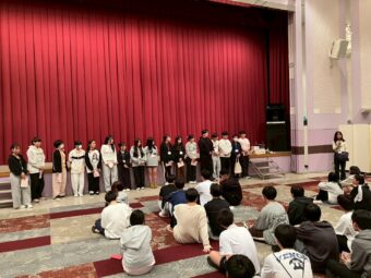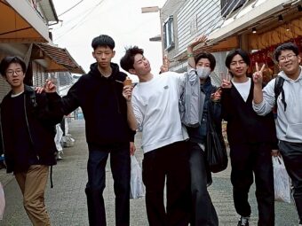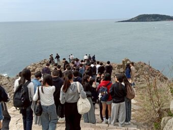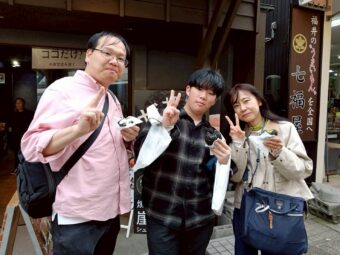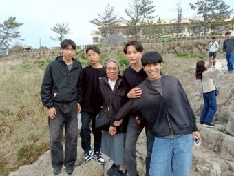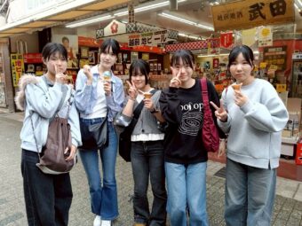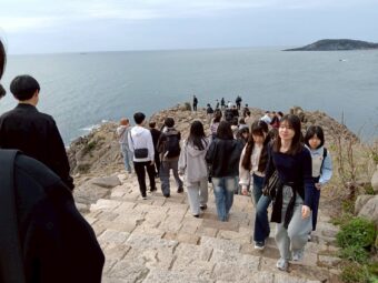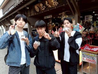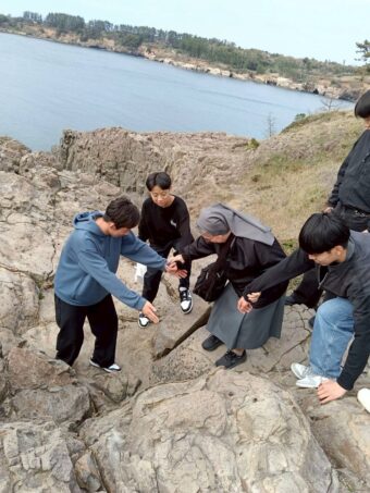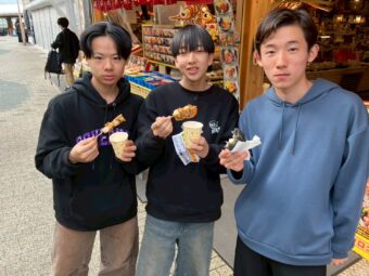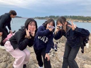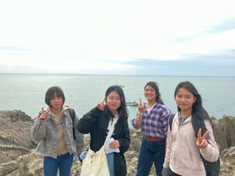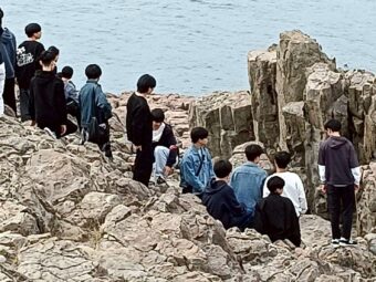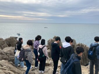 オリエンテーション合宿2日目の午後は、東尋坊に行きました。東尋坊では、危ないといわんばかりの絶壁の近くまで興味深そうに降りていき、サスペンスドラマのロケ地として有名な場所を堪能しました。校長先生もやさしい生徒たちとともに東尋坊を堪能しました。また、その近くのお店で、食べ歩きやお土産を買いました。