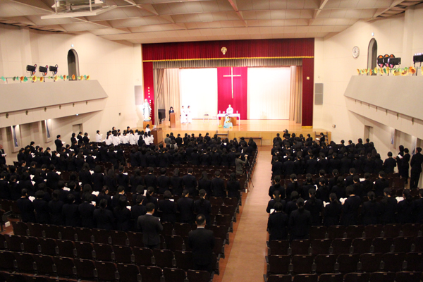 創立記念日に先だち、本日、講堂で創立記念ミサが行われました。