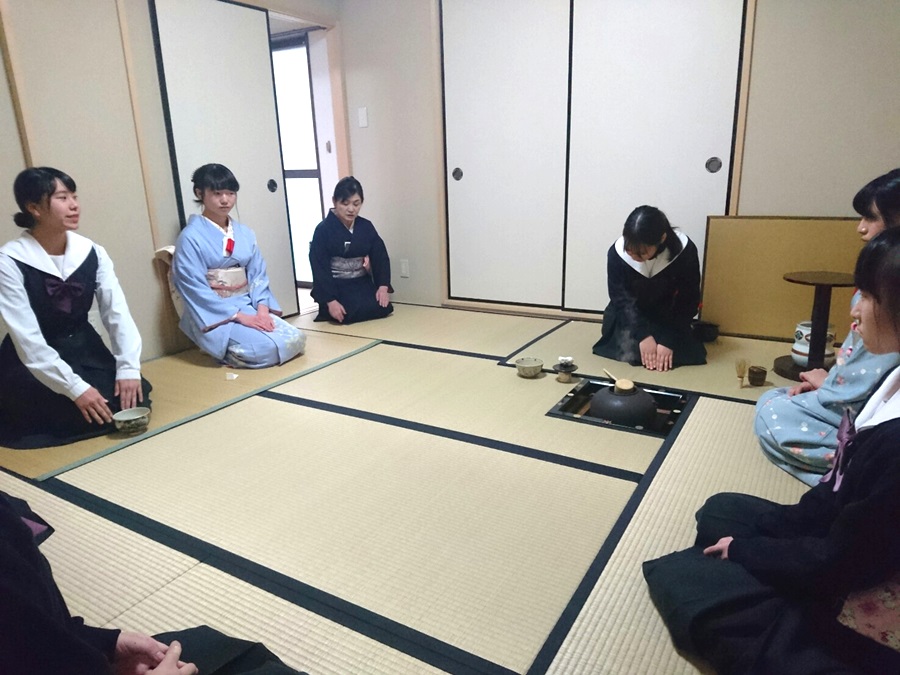 お茶とお菓子をいただいて、生徒たちの表情はよりにこやかに見えます!