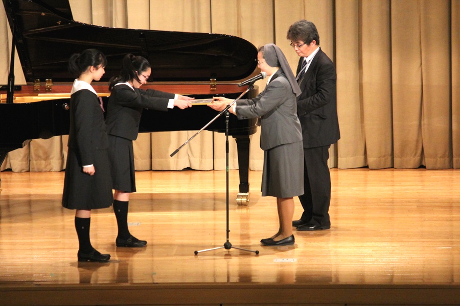 聞かせてくれました。コンクールの後、ゴスペルグループEYSのみなさんによるゲスト演奏会が行われました。校長先生の講評の後、優勝、準優勝のクラスに、