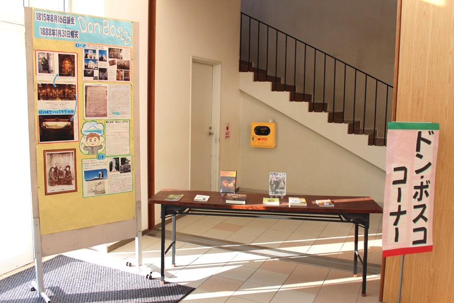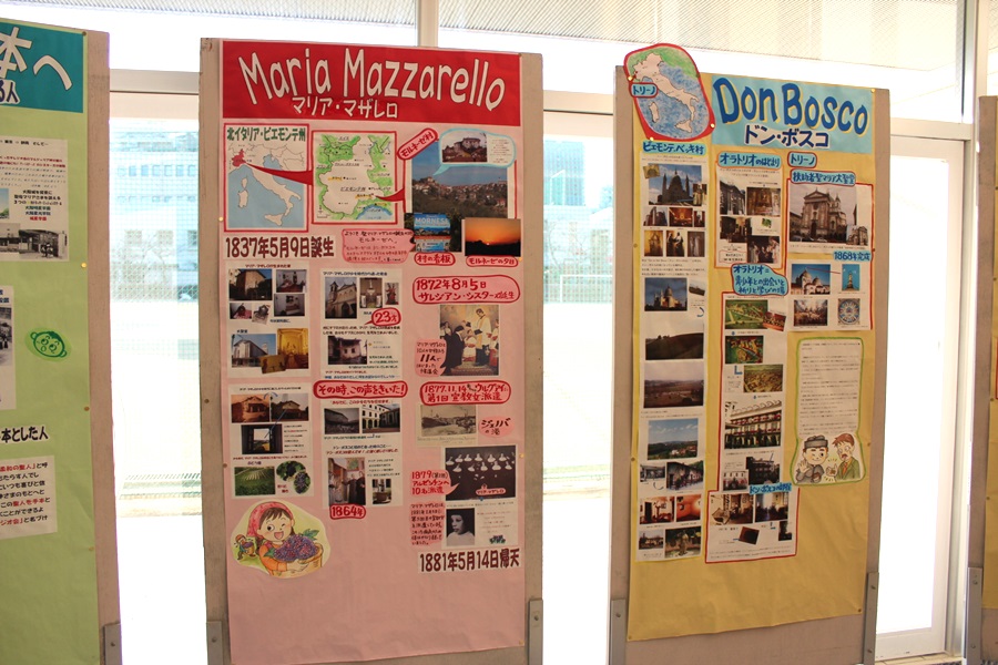 また、この1ヶ月間、講堂下のエントランスホールには、「ドン・ボスコ」「マリア・マザレロ」をはじめ、「世界のサレジアン・ファミリー」や「学園の歴史」