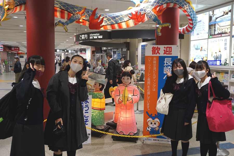 高校2年生は本日より長崎に修学旅行に行きます。8:30 大阪国際空港に遅刻する人は一人もなく、無事に出発することができました。1時間ほどのフライトで長崎に到着しました。
