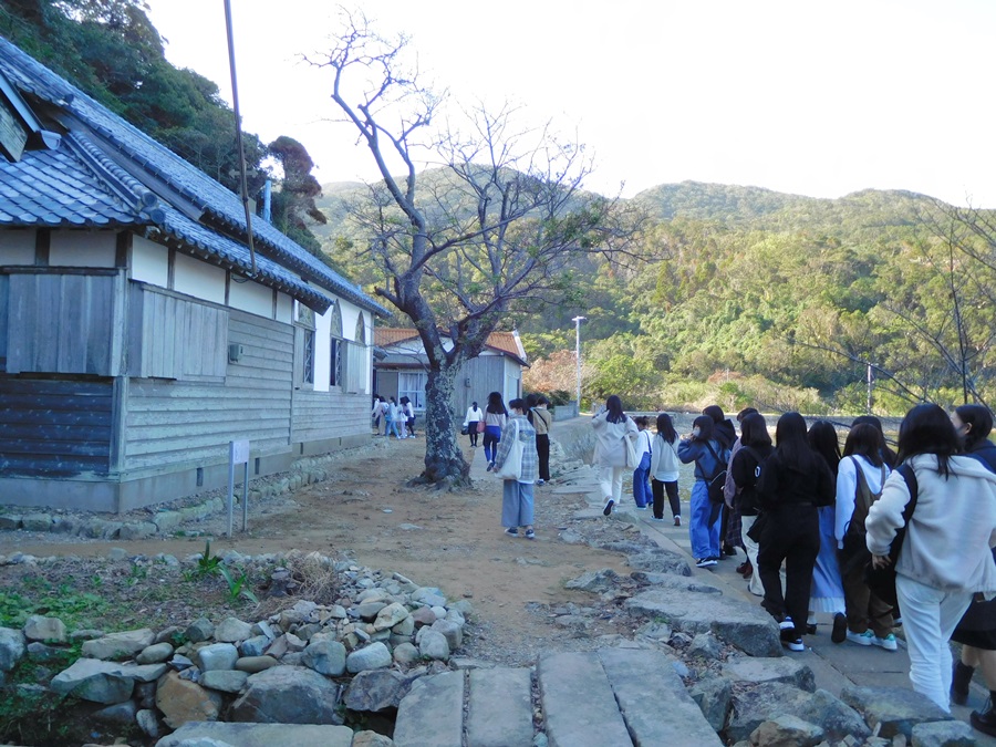 出島見学の後、ジェットフォイルに乗り五島市福江港に向かいました。揺れもほとんどなく、2時間ほどの船の旅でした。無事にホテル到着し、夕食、ボナノッテを行いました。就寝前には部屋長の会議を行い、本日の日程が終了しました。