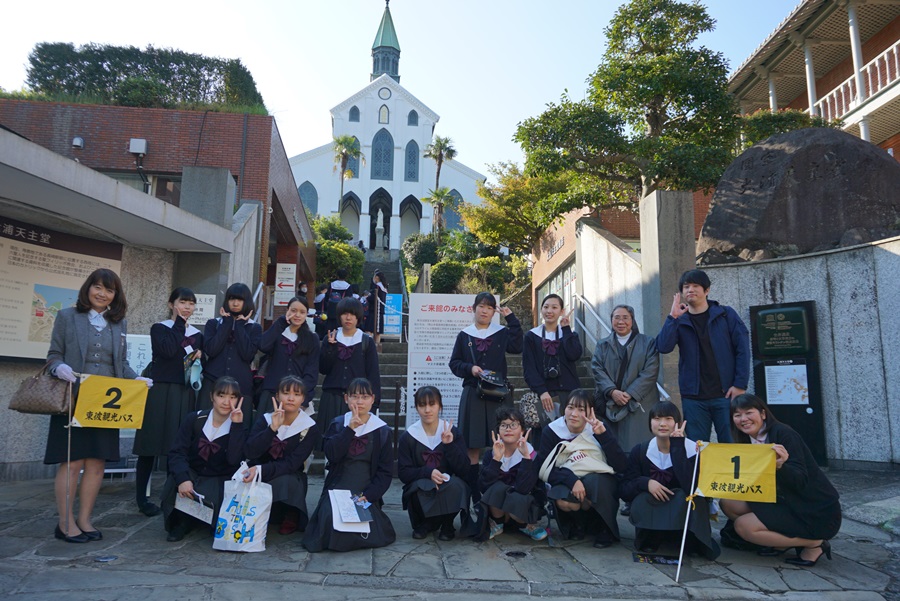 ホテルより長崎市内に移動です。まずは、大浦天主堂に全員で向かいました。