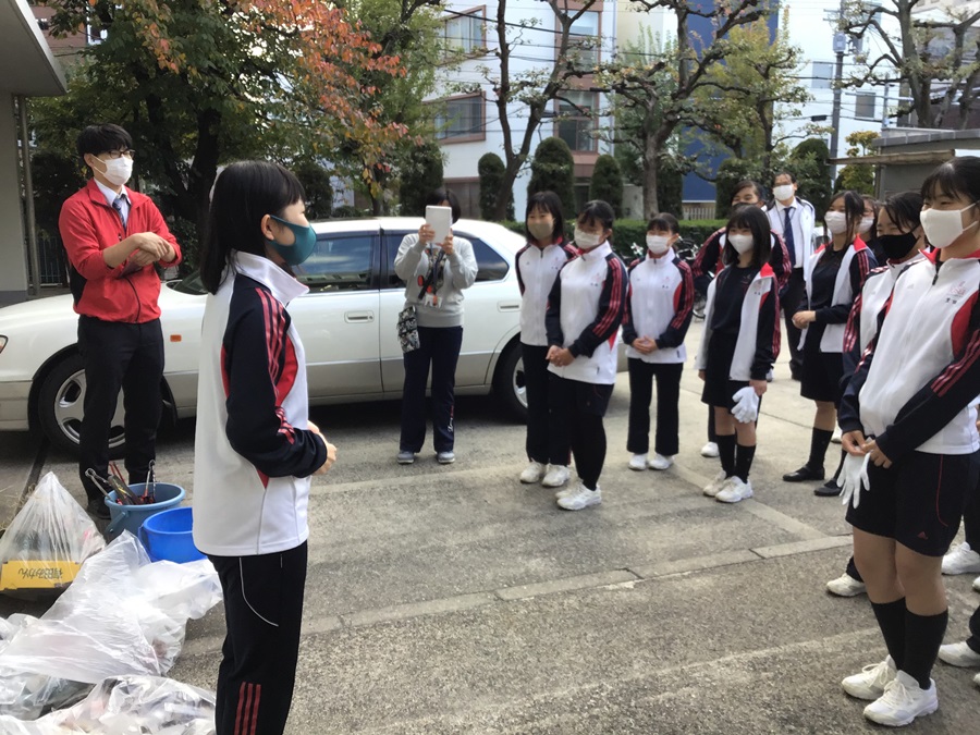 11日の水曜日6時間目、LHRの時間に中学では「地域クリーン作戦」を行いました。中学生が縦割りの3つの班に分かれ、玉造駅周辺、森之宮駅周辺、難波宮跡公園での清掃活動です。ヘルメットや傘、紙くずやタバコの吸い殻等、普段は意識せずに歩いている道にも、気付いていないだけでたくさんのゴミが落ちていました。捨てられたゴミを目にして、また、こうしてゴミを拾うことで、生徒たちは、ポイ捨てはしないという思いやマナーを守るという気持ちを新たにしたことと思います。