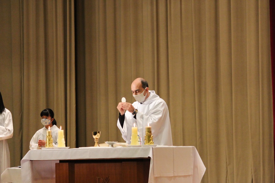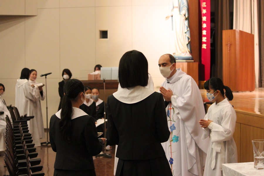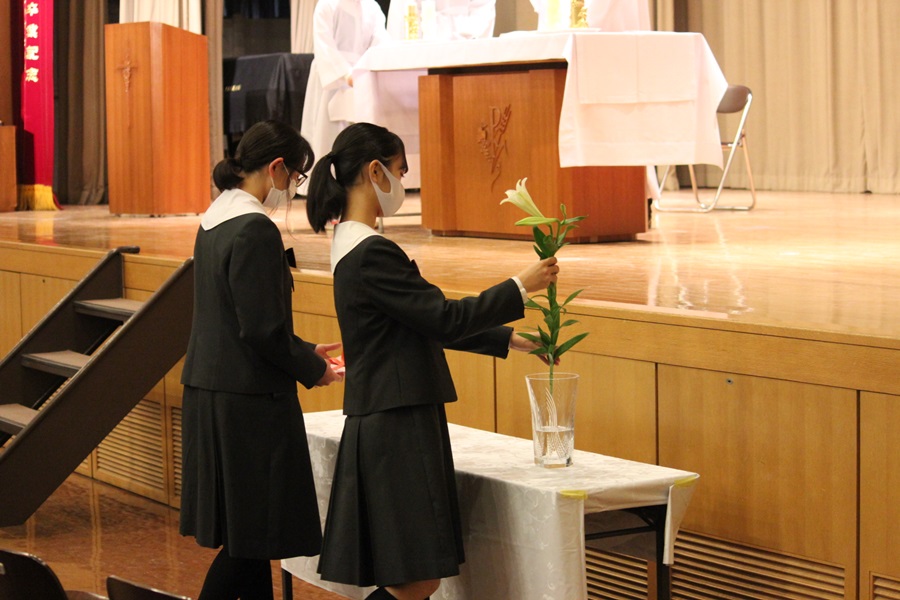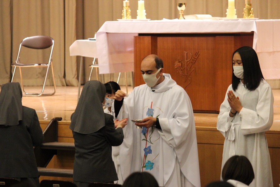 本日、創立記念ミサが行われました。コロナ禍のため、今年初のミサでした。中学生・高校生のみのミサで、歌うことも控え、例年とは異なるミサでしたが、日頃の感謝を思いながら無事に終えることが出来ました。