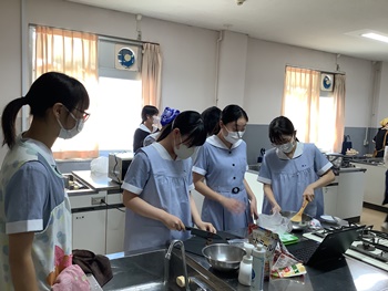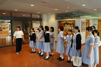 全体の説明の後,礼拝に参加しました。学食体験ではめいめいに食べたいものを選び,楽しんでいました。 キャンパスツアーで学生や職員の方に校内を案内してもらった後,模擬授業を受けて少し大学生気分を味わいました。