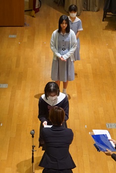 そして、生徒会本部役員の認証式が行われました。先日の選挙の結果、生徒会本部役員に選ばれた、生徒みんなの代表です。生徒会の活動を、自分事として見守っていきましょう。