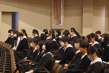 本日の講堂朝礼では、先日開催の英語暗唱弁論大会の表彰式が行われました。 厳正な審査によって上位に輝いた生徒たちに、校長先生から、表彰状と景品が授与されました。 どの生徒のスピーチも素晴らしく、今から来年の開催が楽しみです。その後、高校2年生よりイタリア修学旅行の報告がありました。高校2年生にとって思い出を振り返ることが出来ただけではなく、今後修学旅行を予定している在校生にとっても、有意義な時間となりました。 3年間の高校生活で、素敵な思い出をたくさん作ることができるよう願っています。